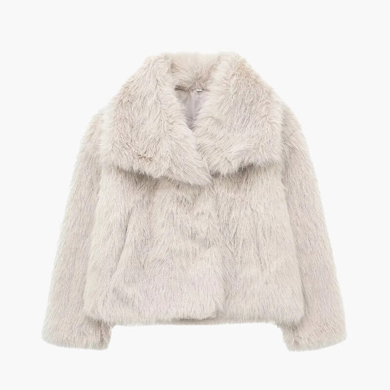 Manteau en Laine Mélangée Ceinturé avec Manches en Fausse Fourrure