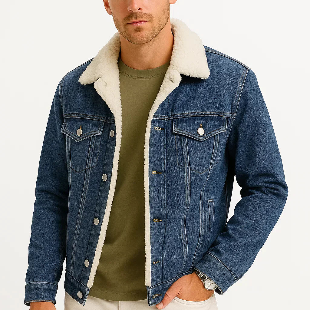 Veste en Fleece pour Hommes en Denim Épaissie pour l'Hiver, Coupe Ample