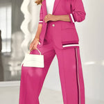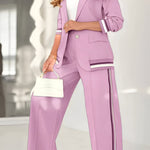 Alliez confort et élégance avec cet ensemble tailleur sportif — comprenant un blazer à simple boutonnage élégant avec des détails de poignets rayés et des pantalons amples décontractés. Cette tenue deux pièces allie la structure adaptée au bureau au confort décontracté, la rendant parfaite pour les journées smart-casual, les voyages ou les styles de vie nomades. La ceinture élastique et la coupe fluide offrent un maximum de confort, tandis que les lignes épurées du blazer et les accents athlétiques créent une silhouette soignée.