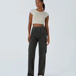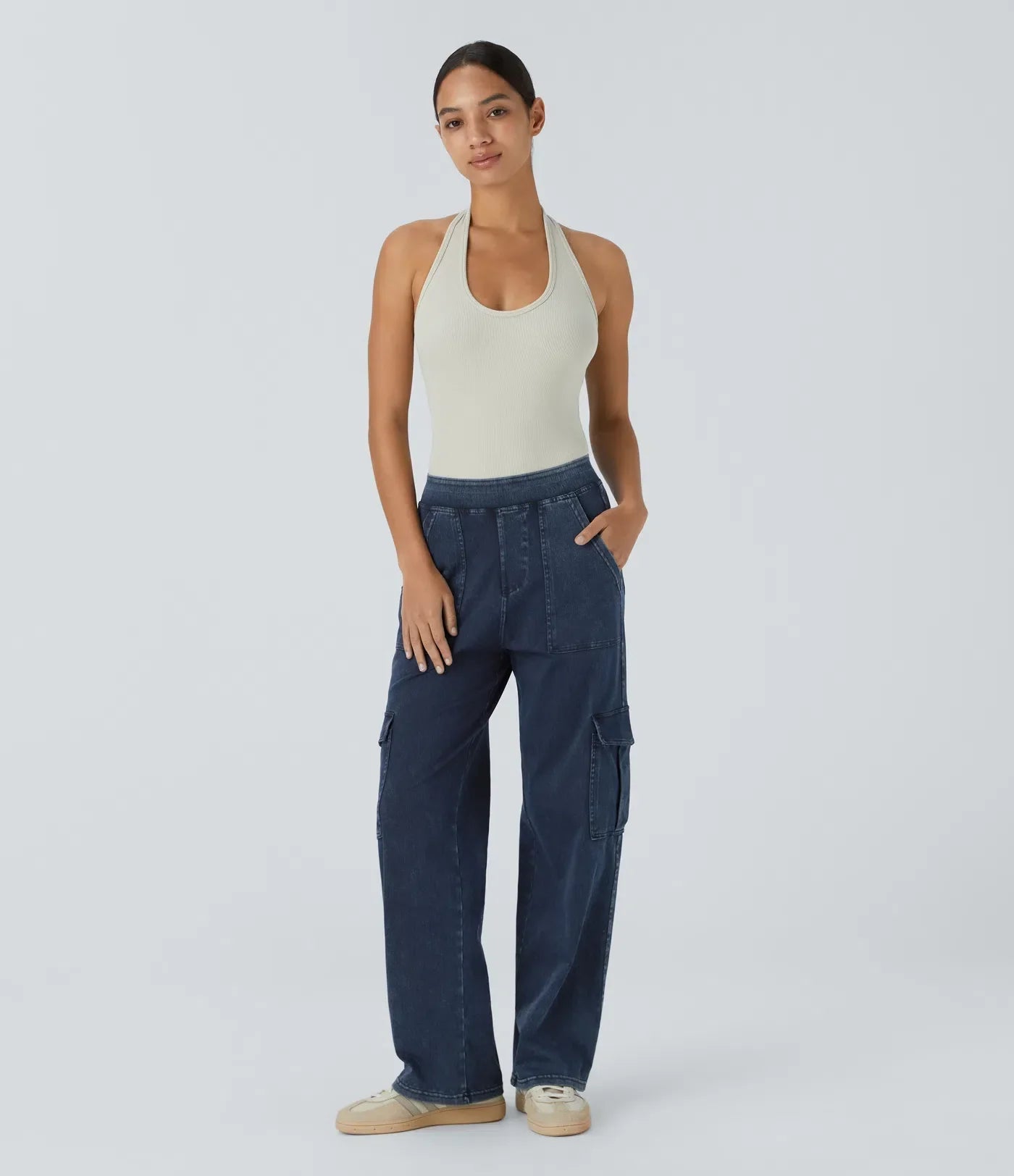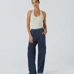 Découvrez votre nouveau pantalon incontournable : le Ella | Pantalon cargo élastique taille haute. Conçu pour les femmes qui aiment le confort et le style, sans faire de compromis. Le tissu en tricot doux et extensible épouse sans effort votre corps, tandis que les jambes droites et la taille haute offrent une silhouette élancée et épurée.