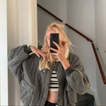Alliez confort pratique et streetwear moderne avec cette veste bombers surdimensionnée matelassée — un essentiel stylé conçu pour rehausser votre style d'extérieur. Avec sa silhouette décontractée et son motif matelassé texturé, cette veste allie fonctionnalité et mode. Que vous sortiez par temps frais ou que vous cherchiez la pièce parfaite pour superposer, ce bombers trouve l'équilibre entre décontracté et raffiné. Les poignets et l'ourlet côtelés ajoutent de la structure à la coupe ample, tandis que les poches à rabat spacieuses et la fermeture à boutons-pression garantissent une commodité au quotidien.