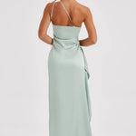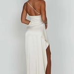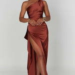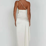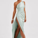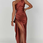 Robe Maxi en Satin à Une Épaule avec Fente Haute