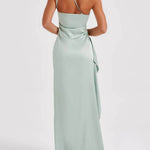 Robe Maxi Satin à Épaule Dénudée avec Fente Haute